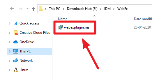 Step 4: Once the download is complete, go to the folder where the 'webexplugin.msi' installer file is saved. Double-click on the installer file to start the installation process.