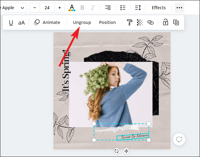 Ungrouping them again will make it easier to apply other design choices like font, color, animations, etc. To ungroup them, select the element and click the ‘Ungroup’ button from the element toolbar.