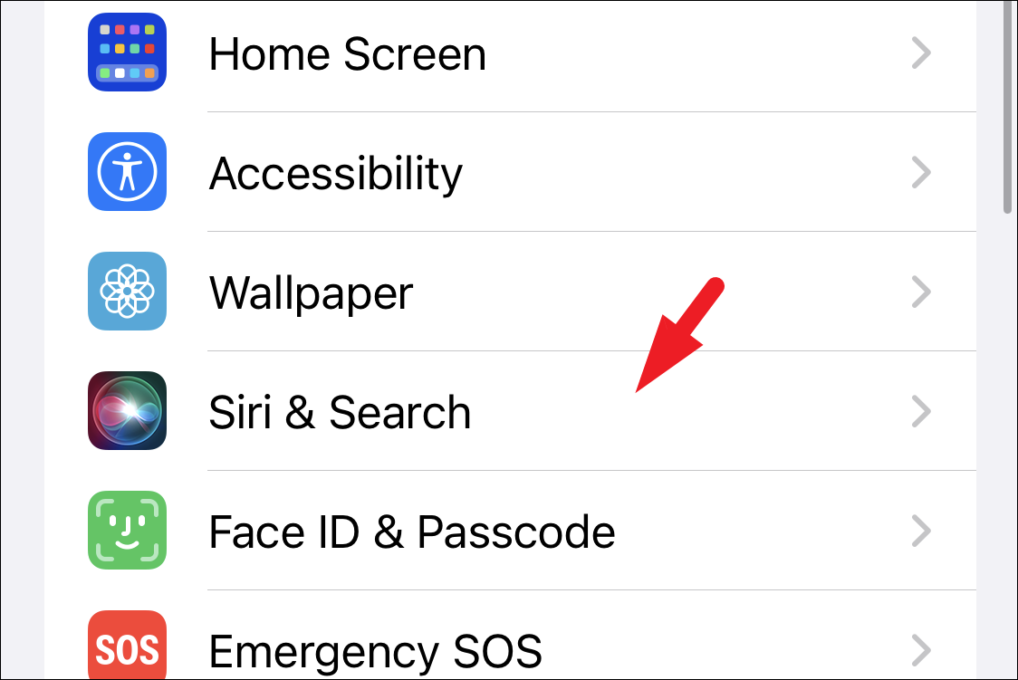 Then, locate and tap on the ‘Siri & Search’ tab from the list to proceed.
