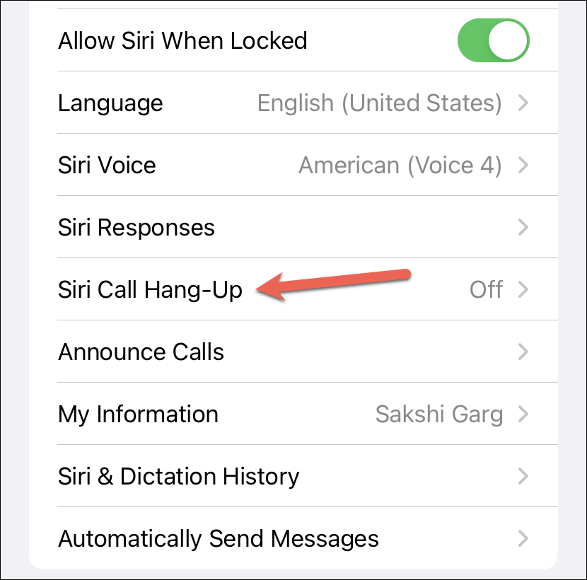 Next, tap on the ‘Siri Call Hang-Up’ option to continue.