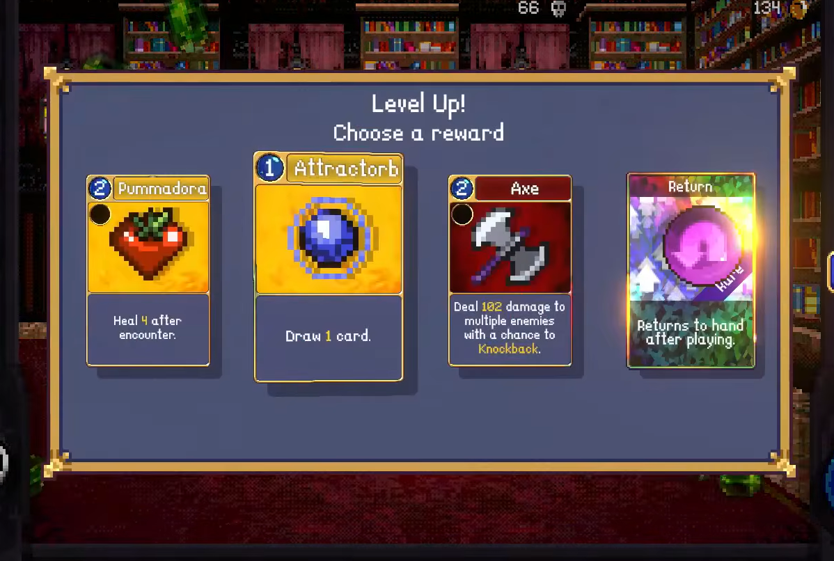 After you have Pummarola, use it in battles 10 times to unlock the Restore Health Gem, which adds Recovery to whatever card you slot it into. High-tier Tome cards are the best home for it since they start with more sockets.