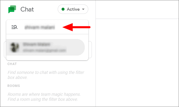Step 1: In the Google Chat interface, go to the search bar at the top labeled Find people and rooms. Type the name of the person whose conversation you want to unhide.