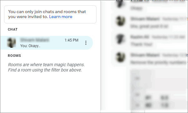 Step 1: Open Google Chat on your browser or launch the Google Chat application. Navigate to your chat list and find the conversation you want to hide.