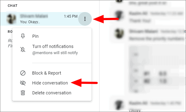 Hiding a conversation in Google Chat