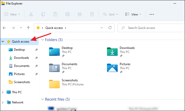 - If File Explorer doesn't open to Quick access by default, click on Quick access at the top of the left sidebar.
