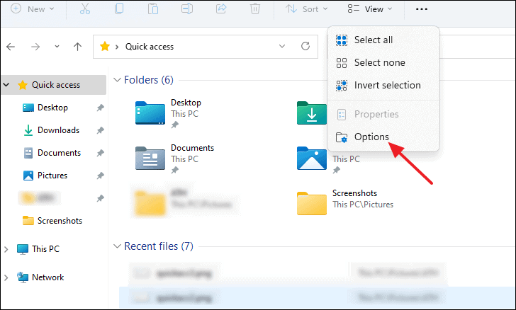 - Open File Explorer, click the See more button (three dots), and select Options to open the Folder Options window.