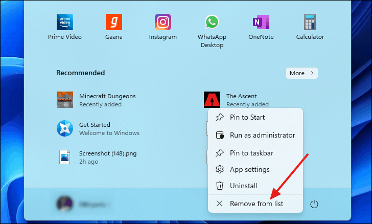 Windows 11 also displays recently opened files and apps in the Recommended section of the Start menu. To protect your privacy, you can remove individual items or disable this feature entirely.