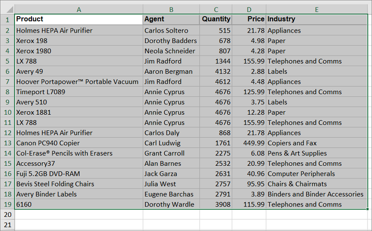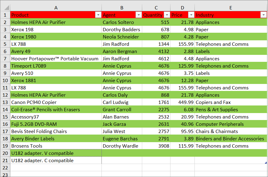 The advantage of using the table style method to highlight alternate rows is that whenever you add rows to the range or remove rows from the range, Excel will automatically shade those alternate rows with the color banding (as shown below). Now, even if you sort, filter or move the data within the table, color banding will remain unchanged.