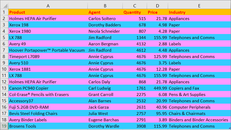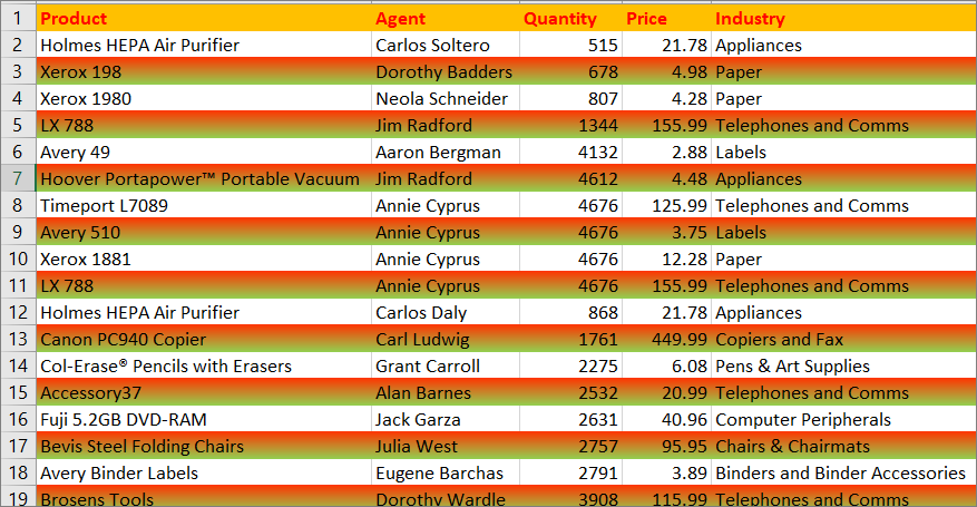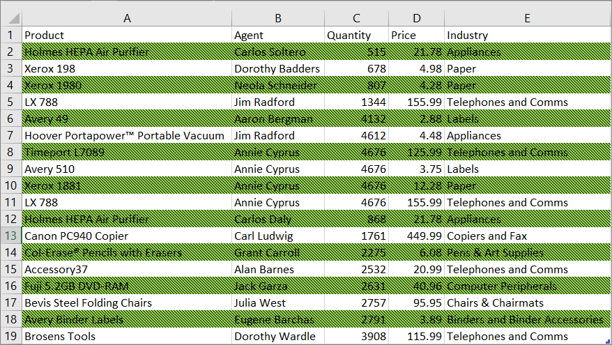 Or if you apply both odd and even row formatting rules, you will get the below result: