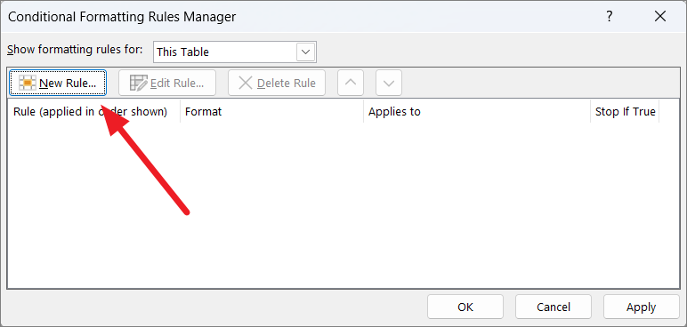 Next, click the ‘New Rule…’ button again to add another rule for odd rows.