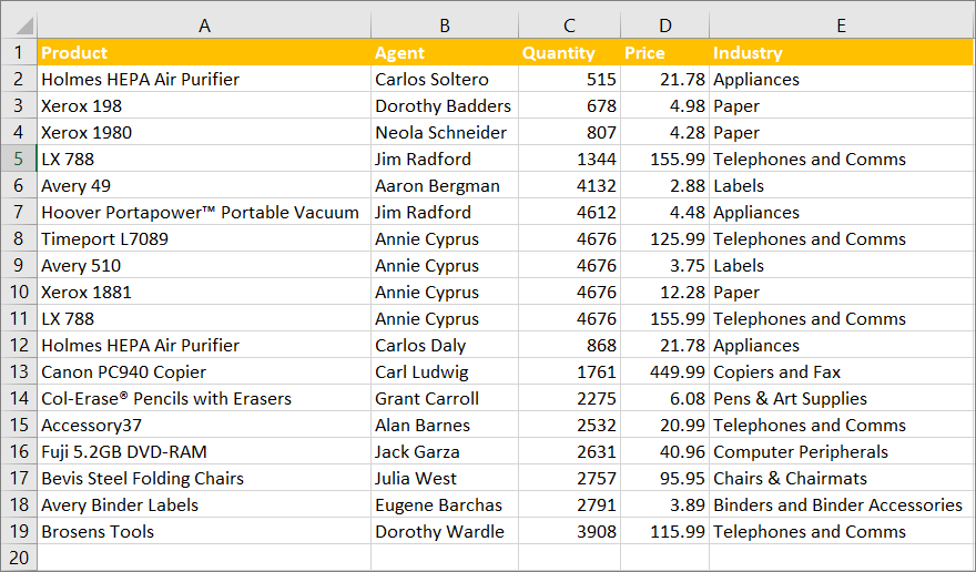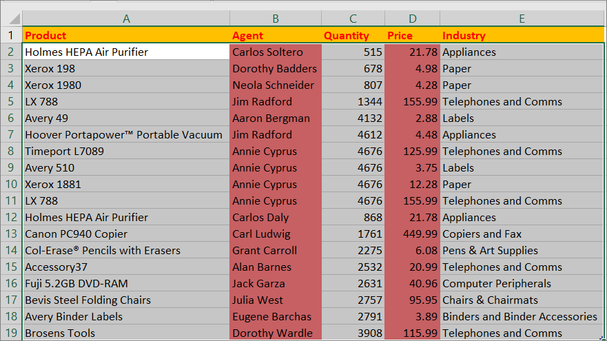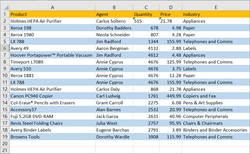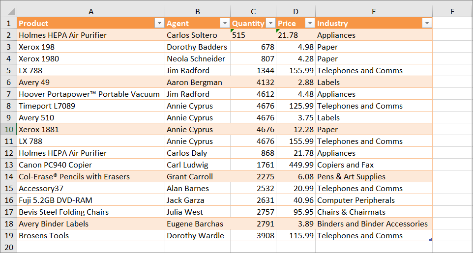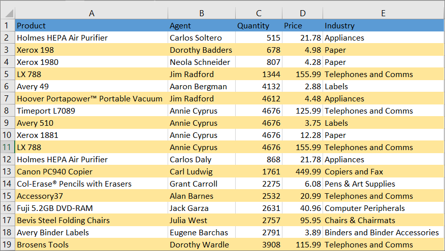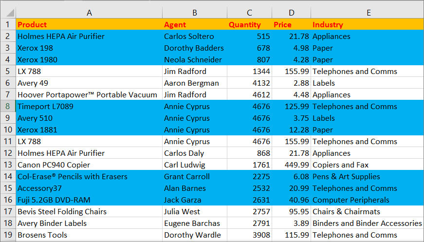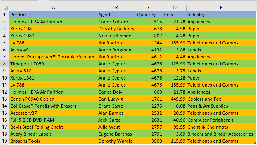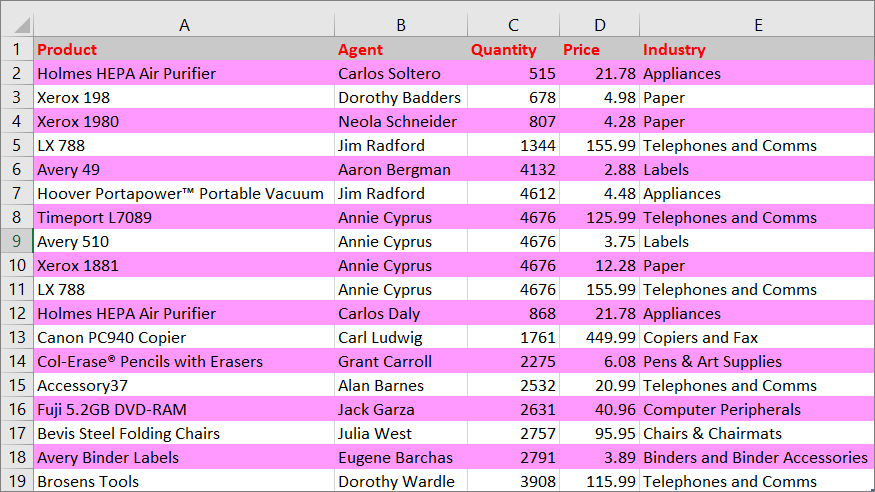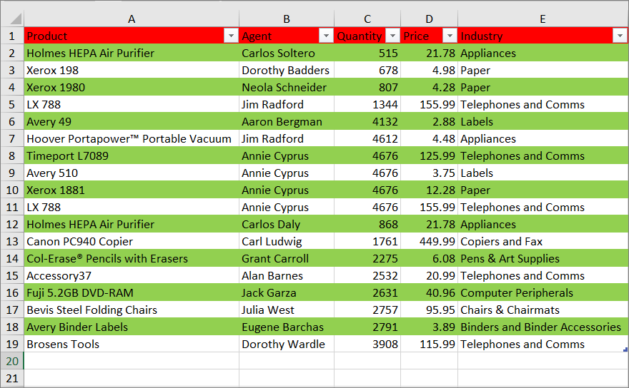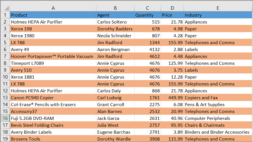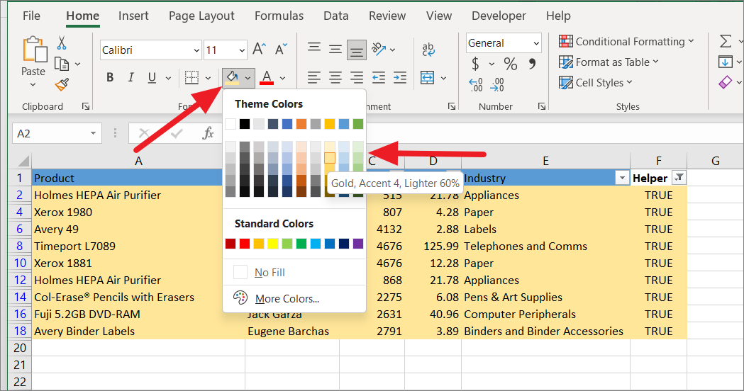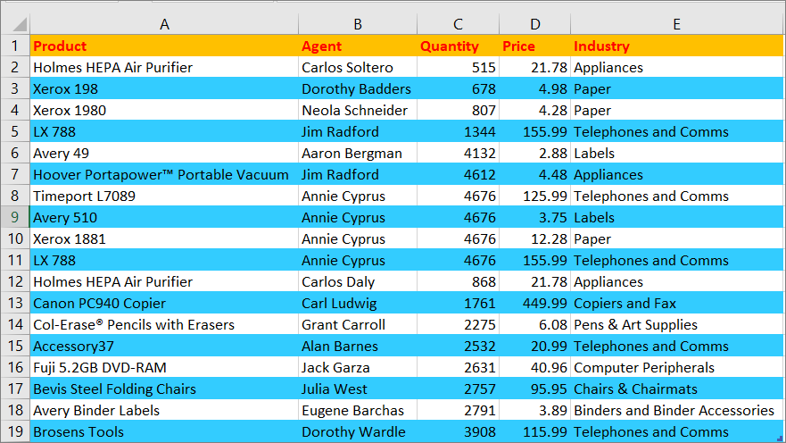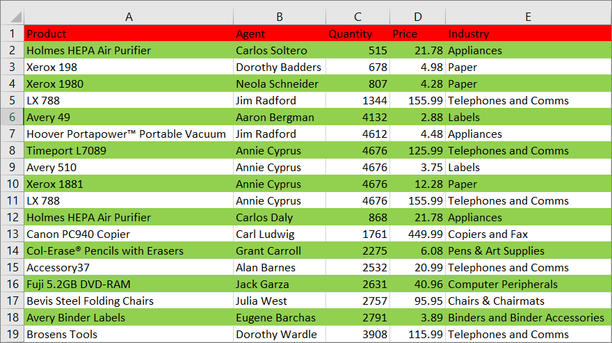 However, if you move, sort, or filter specific cells or entire rows within the range, the color shading will go along with the row, disrupting the alternate highlight.