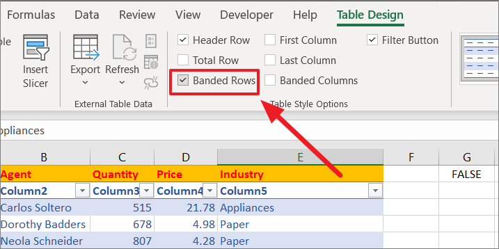 If you only want the alternate row color banding without the table functionality, you can convert the table back to a range. Here’s how: