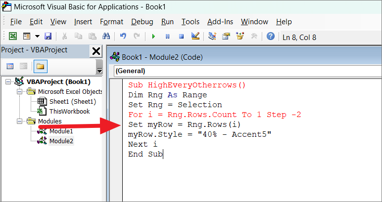 Although it is not as simple as the above methods, if you prefer coding, you would probably want to use VBScript to shade or highlight every other row in Excel. Here’s how you can do that:
