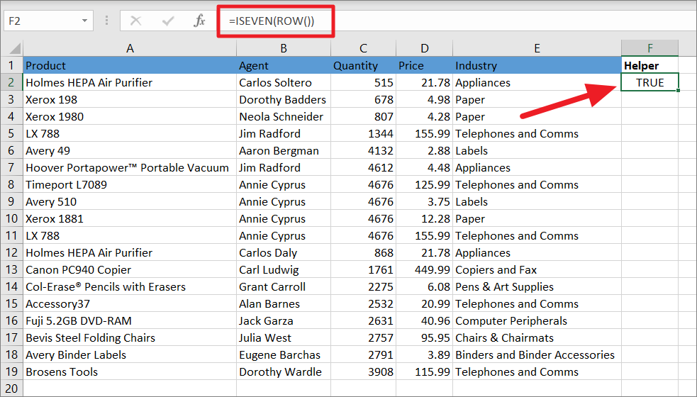 Highlight Alternate Rows using ISEVEN and ROW functions