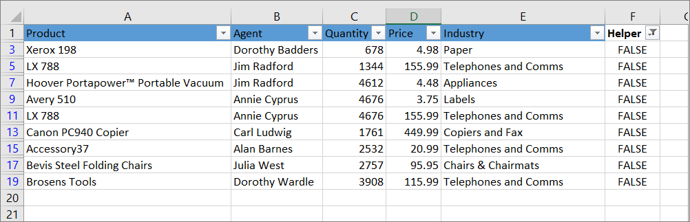 Now, all the column values will be filtered where only the rows with FALSE value (alternate odd rows) will remain visible while others will be hidden.