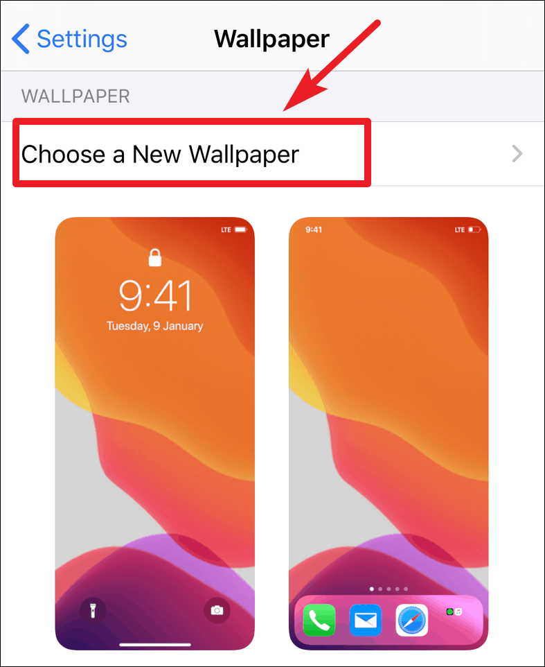 To change your wallpaper, go to Settings > Wallpaper. Select Choose a New Wallpaper and tap on Stills and select a new wallpaper for your screen.