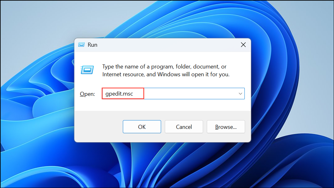 Step 1: Open the Group Policy Editor by pressing Windows Key + R, typing gpedit.msc, and pressing Enter.
