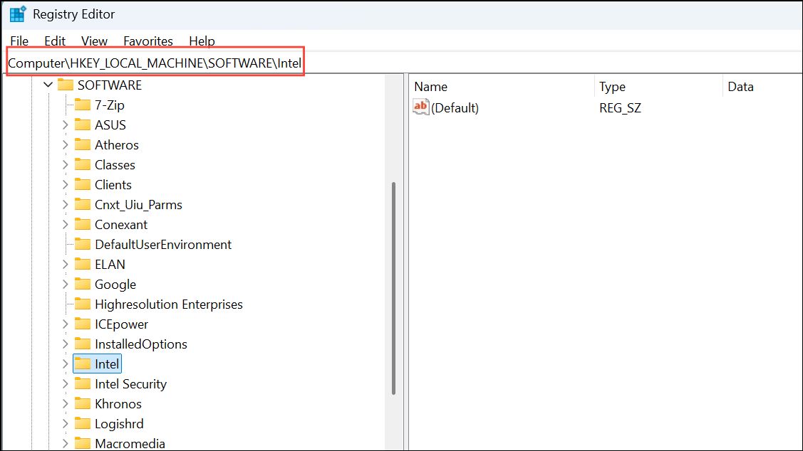 HKEY_LOCAL_MACHINE\Software\Intel