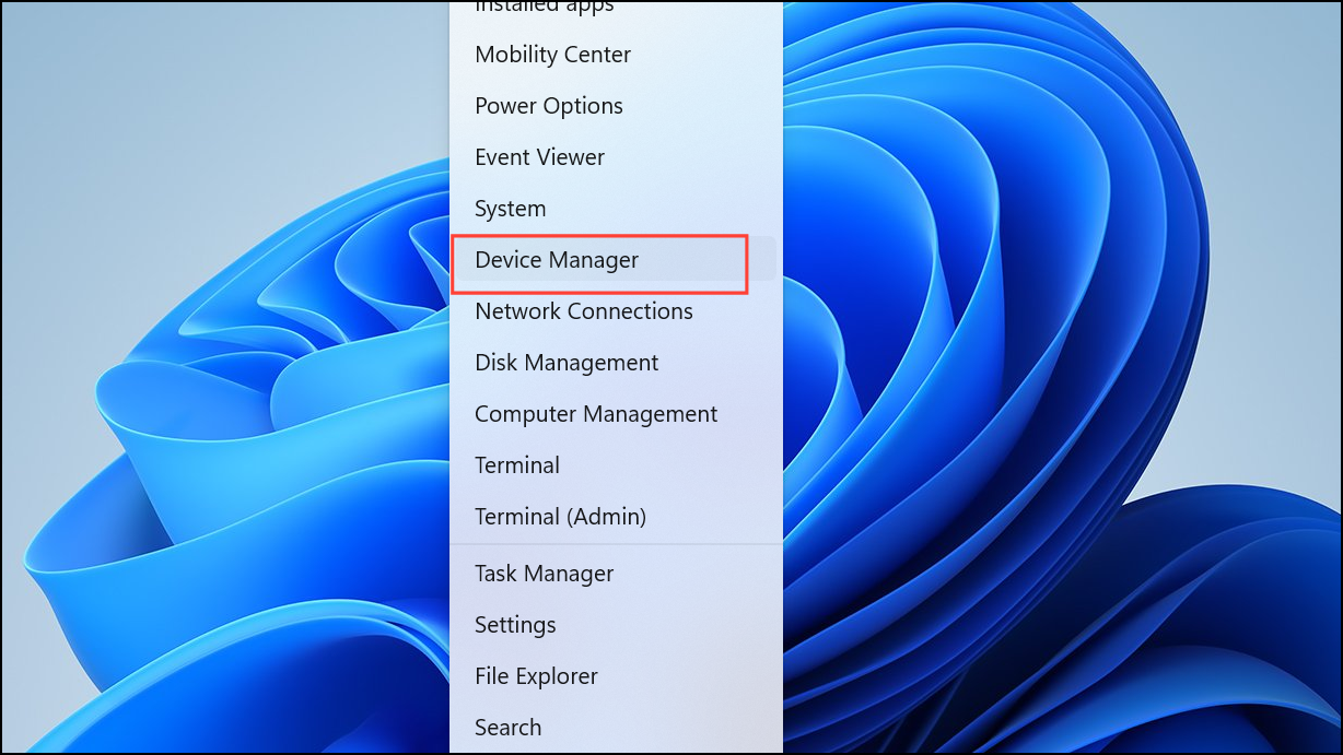 Step 1: Press Win + X, select Device Manager.