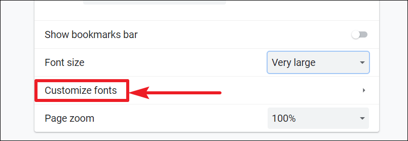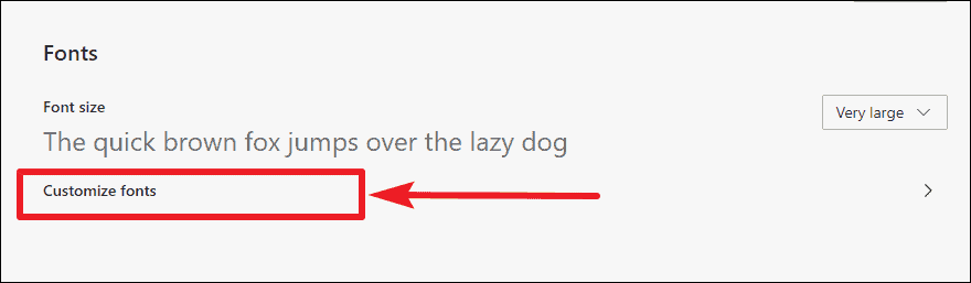 Step 4: If the preset options don't suit your needs, click on Customize fonts beneath the Font size setting for more detailed control.