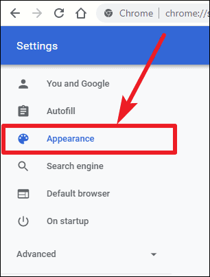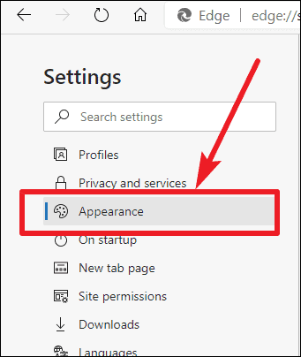 Step 2: In the Settings page, look at the left sidebar and click on Appearance.