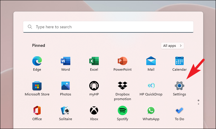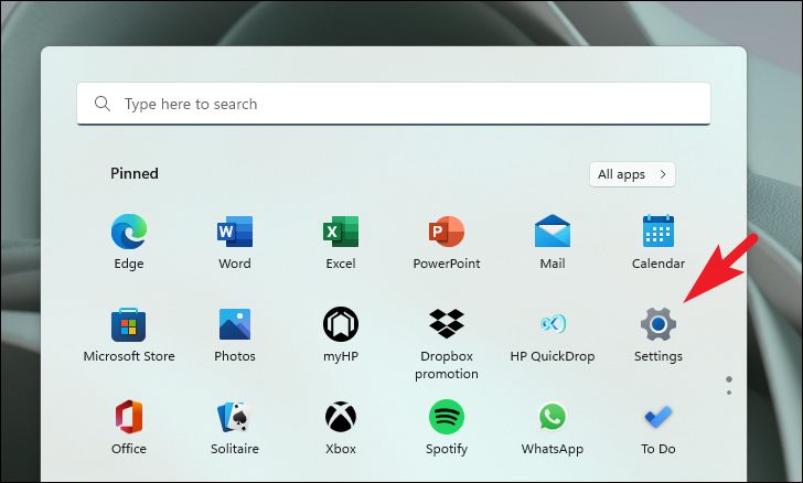 Step 1: Open the Start Menu and select the Settings app from the 'Pinned apps' section, or search for Settings.