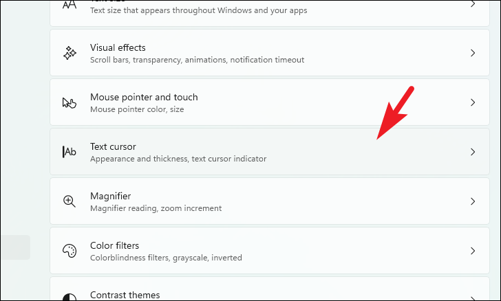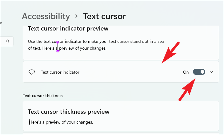 Step 5: To make the cursor even more visible, enable the Text cursor indicator by toggling it on. This adds colored indicators to each side of the cursor. Click on the option to expand more settings.