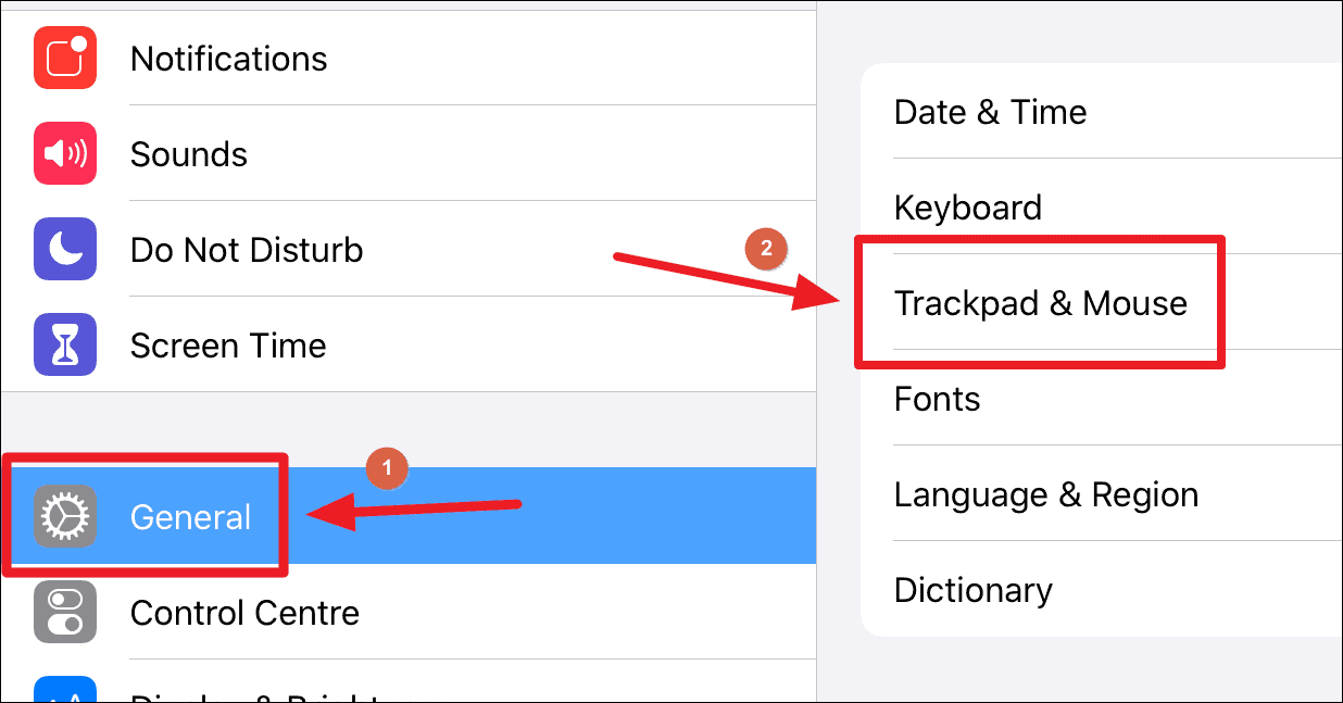 Go to ‘General’ (if it isn’t selected already) and tap on ‘Trackpad & Mouse’ from the right panel.