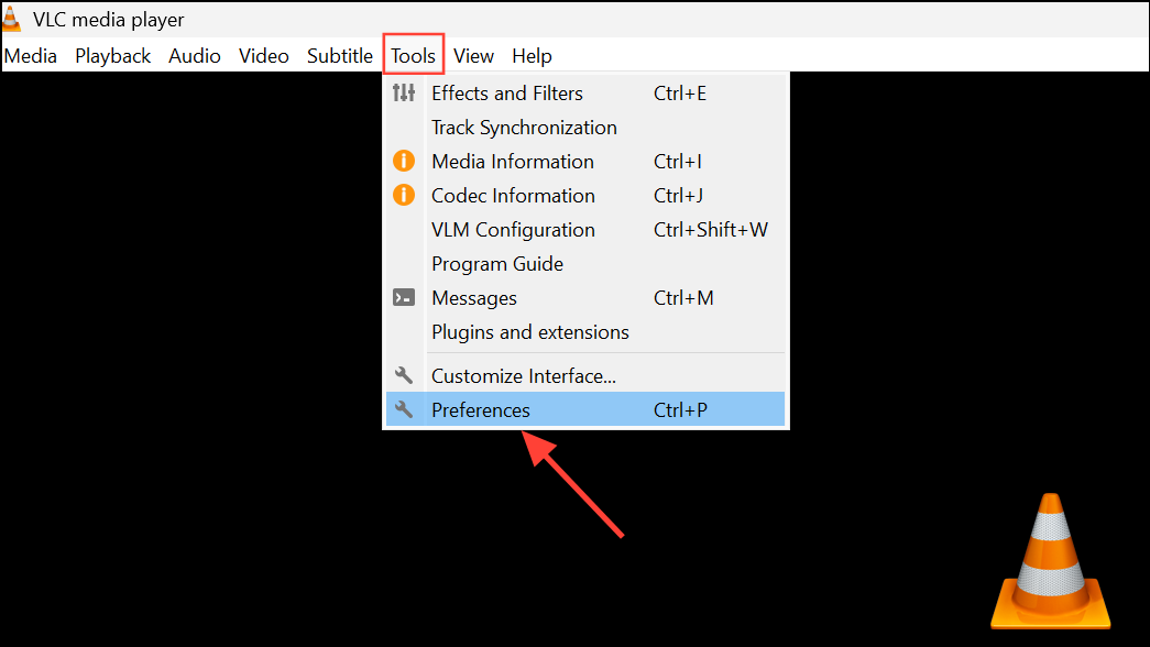 Step 2: Open VLC, click Tools in the top menu, then select Preferences.