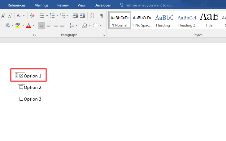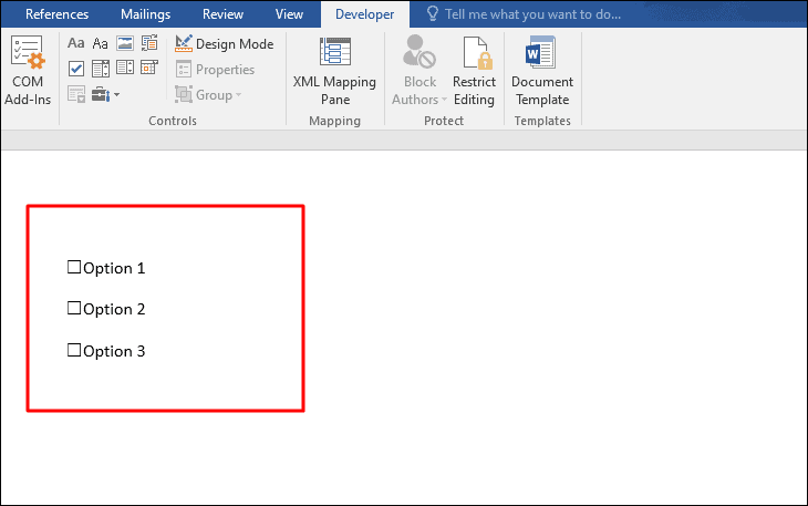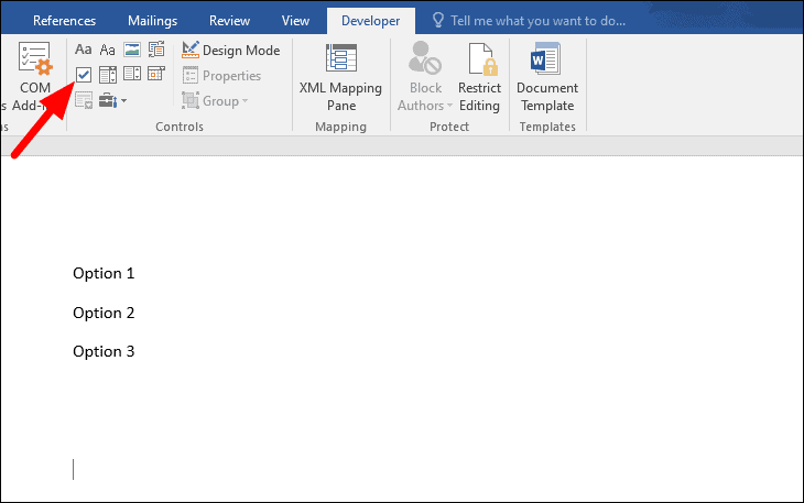 With the Developer tab enabled, you can now insert checkboxes into your document.