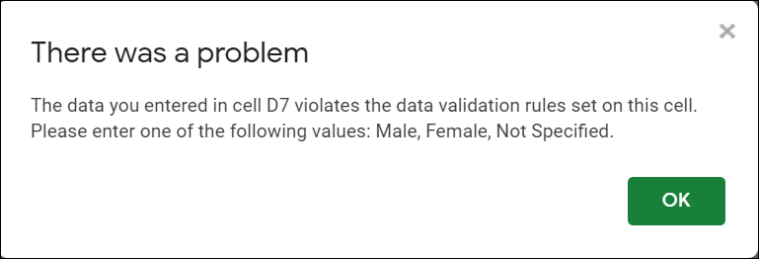 Note: If you've added or removed items and expanded or reduced your list's range, make sure to update the range in the Data validation settings accordingly.