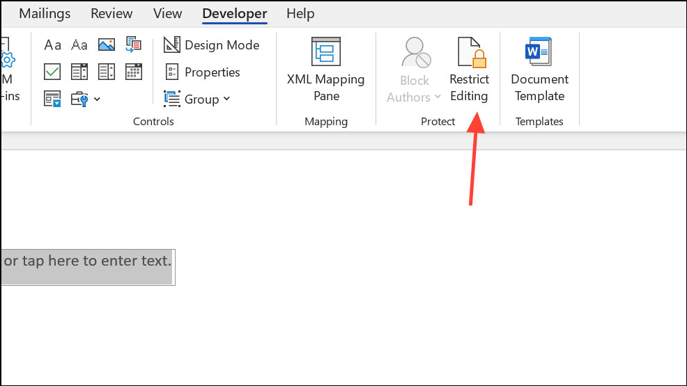 Step 6: For form protection, return to the Developer tab and select Restrict Editing.