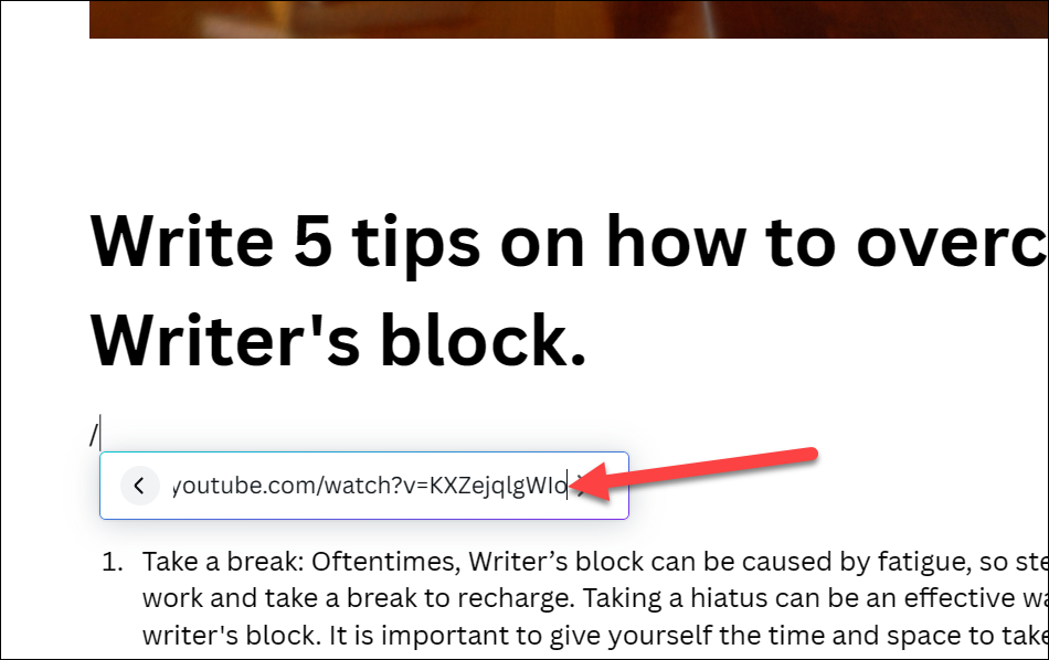 It’s extremely easy to insert a YouTube video in a Canva Docs document if you’re using Canva on your computer. Before proceeding, keep the link for the YouTube video copied.