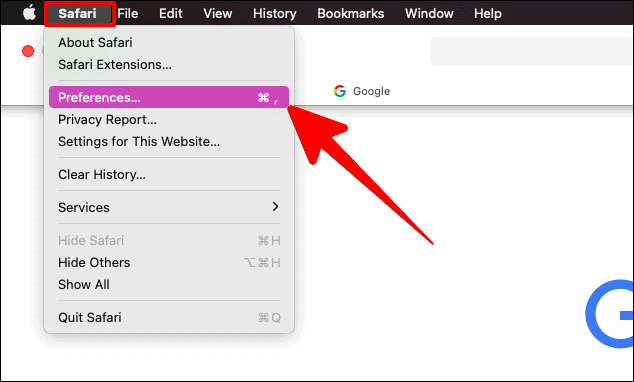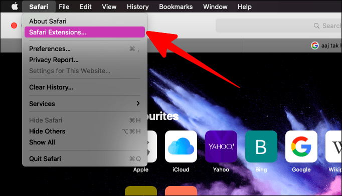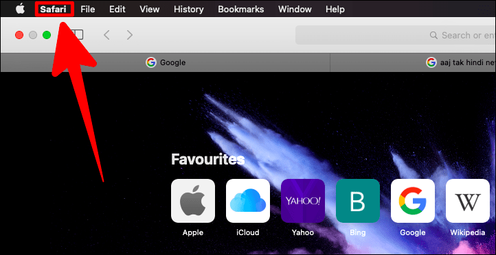 Step 1: Open the Safari browser on your Mac. In the top menu bar, click on Safari.