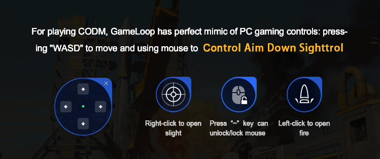 Gameloop has pre-configured the COD: Mobile for PC with a basic first-person shooter profile to control player movements with WASD and down sight aiming with a mouse.