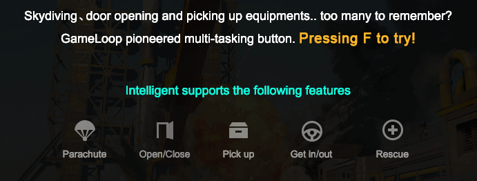 Use the F key for interactive variables such as deploying parachute, opening and closing doors, picking up items, getting in and out of vehicles, and rescuing a teammate.