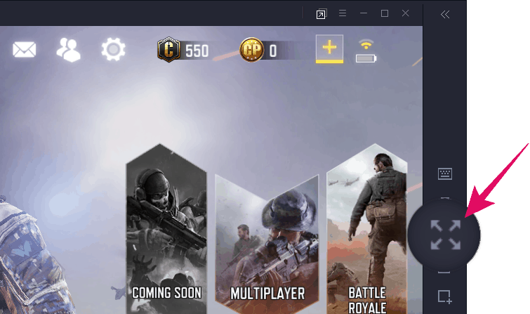 To play the game in full screen, click the full screen icon on the right panel of the emulator screen.