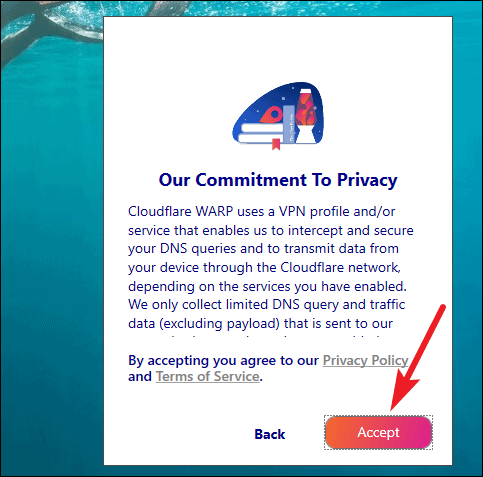 Follow the instructions on the setup wizard to install Cloudflare WARP on your PC. The whole thing will only take a couple of minutes to finish.