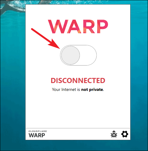 Click the toggle button to connect to the VPN. And you’ll connect to the WARP VPN and the 1.1.1.1 DNS Resolver.
