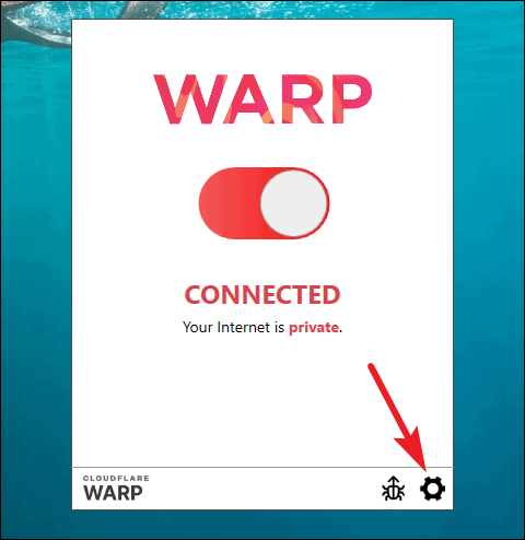 If you ever want to use only 1.1.1.1 DNS Resolver without the WARP VPN, click on the ‘Settings’ button on the bottom right corner of the Cloudflare WARP window.
