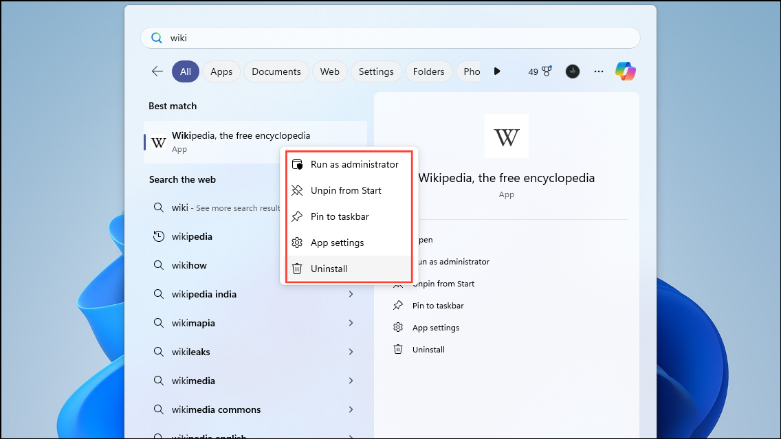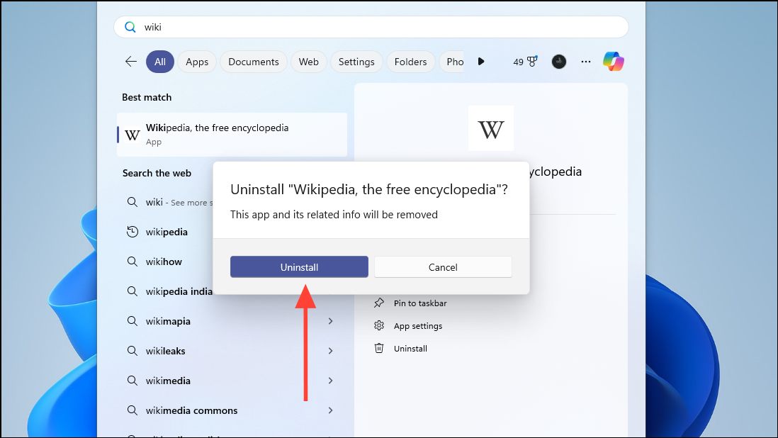 - Now, depending on your choices, you can access the Wikipedia app using the desktop icon, Start menu, and taskbar.