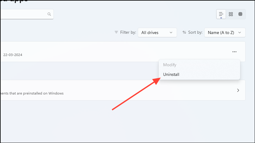 - Right-click on the app when it appears, and you will find several options in the drop-down menu, including the 'Uninstall' option.