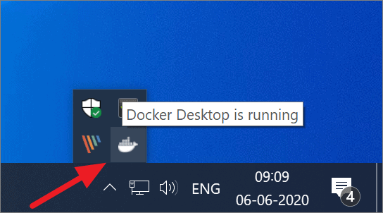 The white whale in the system tray indicates that Docker is running. But you can also test your docker installation by opening the PowerShell or CMD and typing docker --version