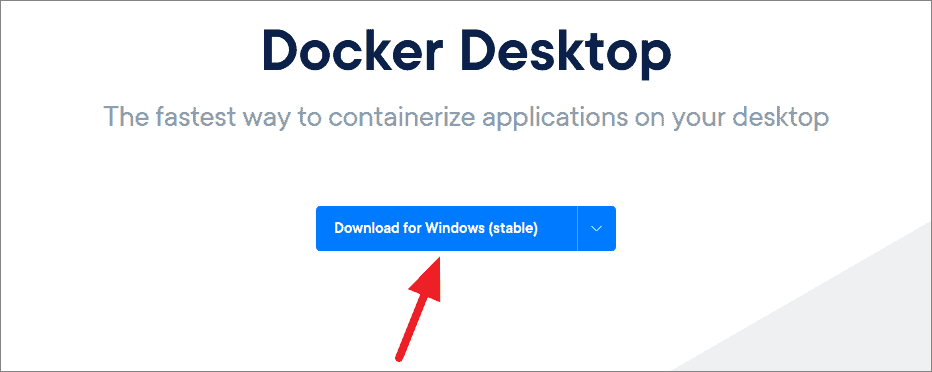 If you want to install Docker the manual way, head on over to the Docker Desktop downloads page and then click on ‘Download for Windows (Stable)’ button to download the installer file.