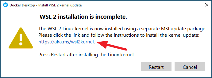 Note: If you have ticked ‘Enable WSL 2 Windows Feature’ in the setup, this command can be skipped as Docker Setup enables WSL automatically. Go to the ‘Update WSL’ section below to continue with the process.