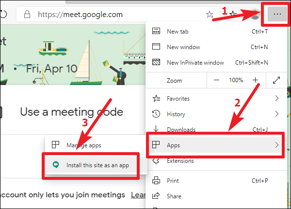 Install Google Meet as an app using Microsoft Edge
