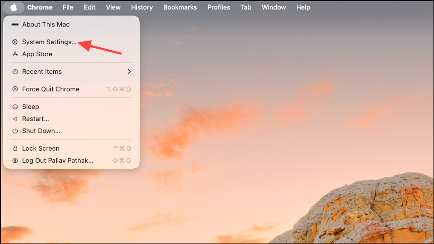 Step 2: After enrolling, open System Settings on your Mac. Click the Apple icon in the top-left corner and select System Settings from the drop-down menu.