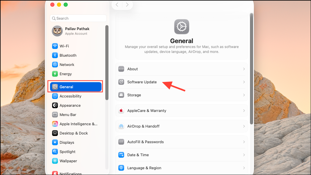 Step 3: In System Settings, navigate to General > Software Update. Here, you’ll see options for Automatic Updates and Beta Updates. Click the i icon next to Beta Updates.
