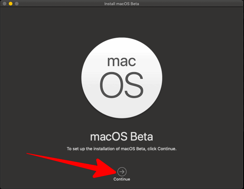 You would now see an ‘Install macOS Beta’ window. Click on ‘Continue’ to set up the installation.