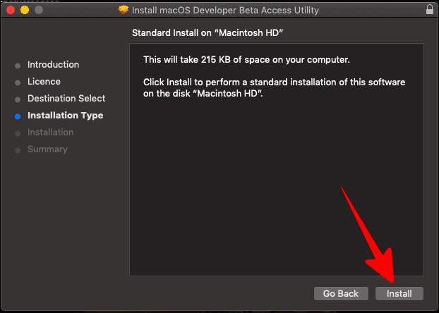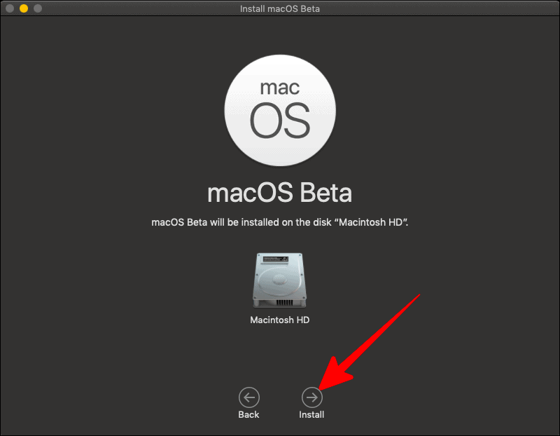 The next window would inform you about the end source of the installation. Basically, where this installed file would fill in. If your disk is full, you would get constant alerts to free up space, until it is enough for macOS Beta to fit into your disk. Once you have enough space and there is a free disk, click on ‘Install’.